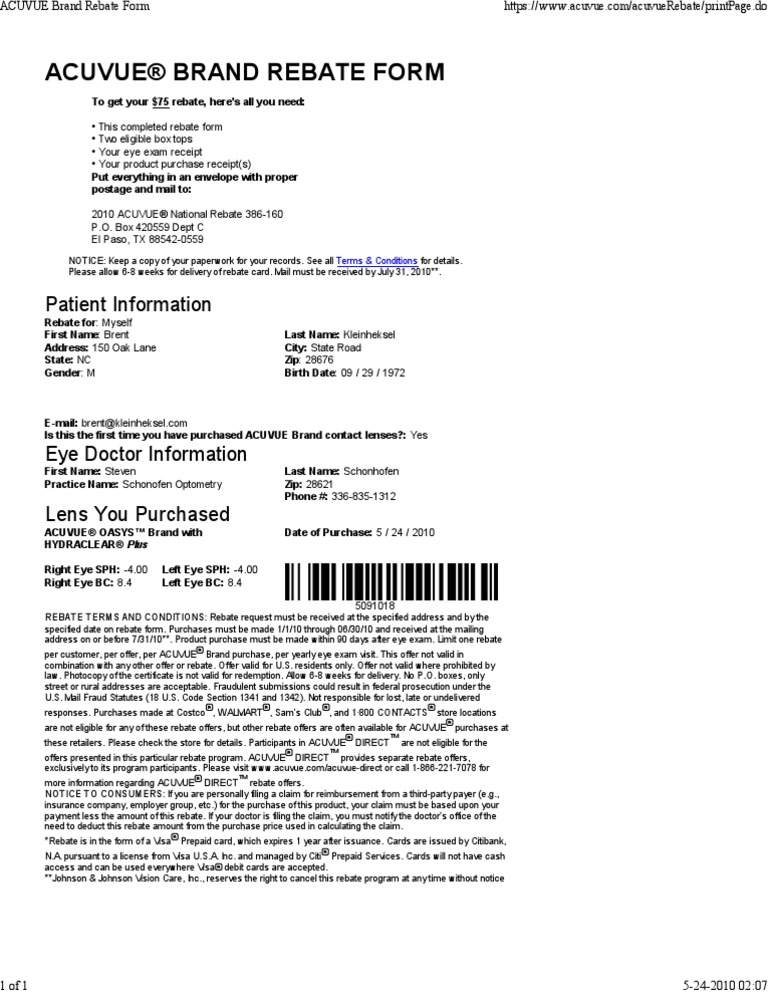 Acuvue Rebate Form 2024 Printable Rebate Form