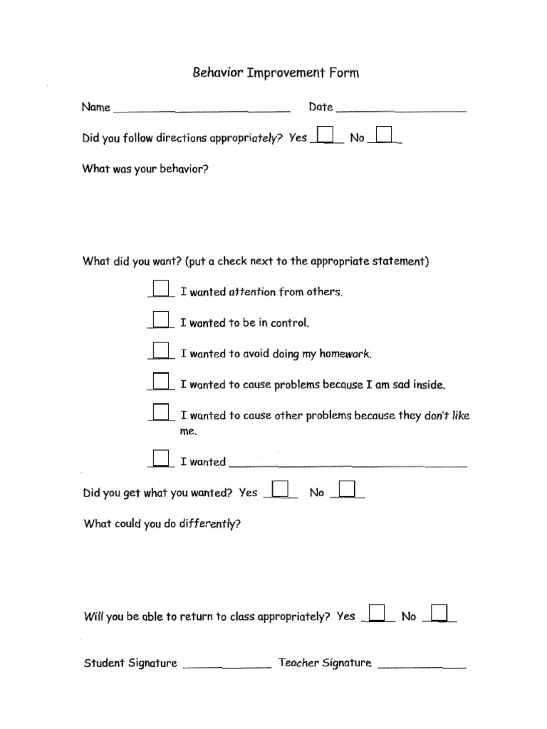 Behavior Improvement Form Doc Fill Online, Printable, Fillable, Blank