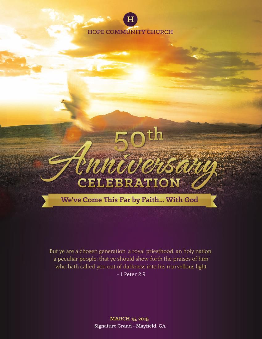 Celebrate your churchs milestone anniversary with our free downloadable program templates. Create free church anniversary program flyers, posters, social media graphics and videos in minutes.