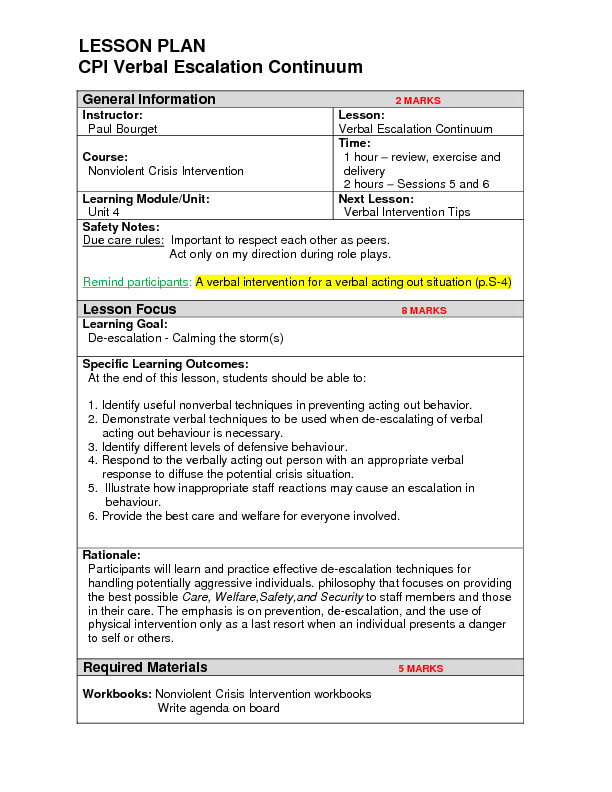 Verbal Escalation Continuum Lesson Plan by Paul Bourget Flipsnack