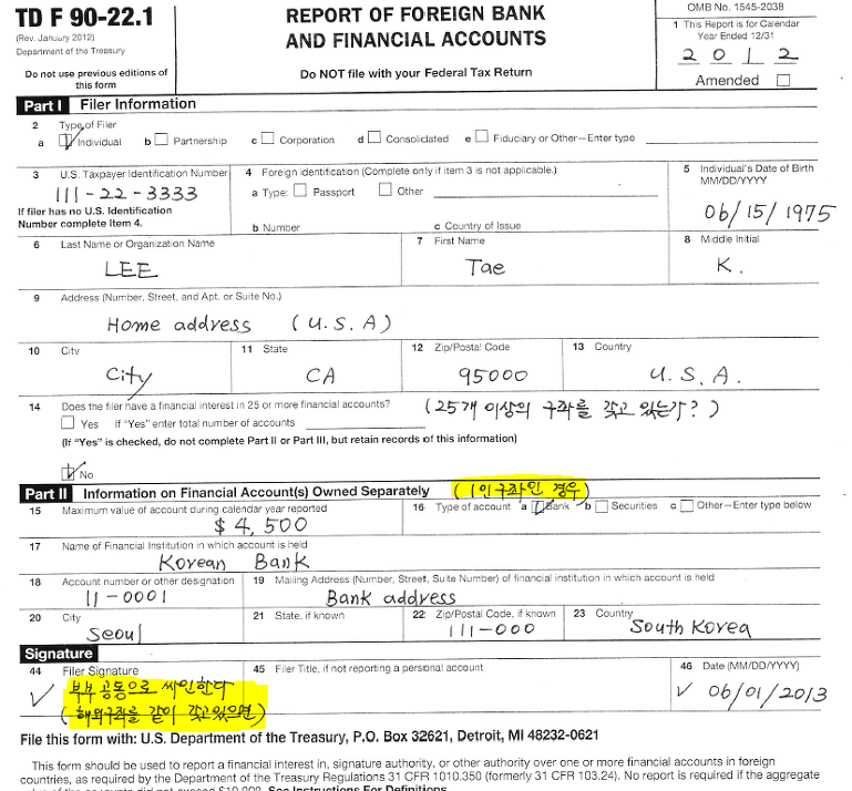 Sample FBAR Form Free Download