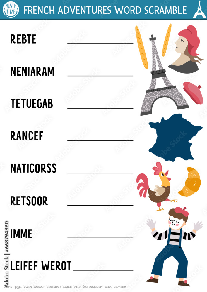 French Unscramble Words, Solve Anagrams Or Unscramble Letters.