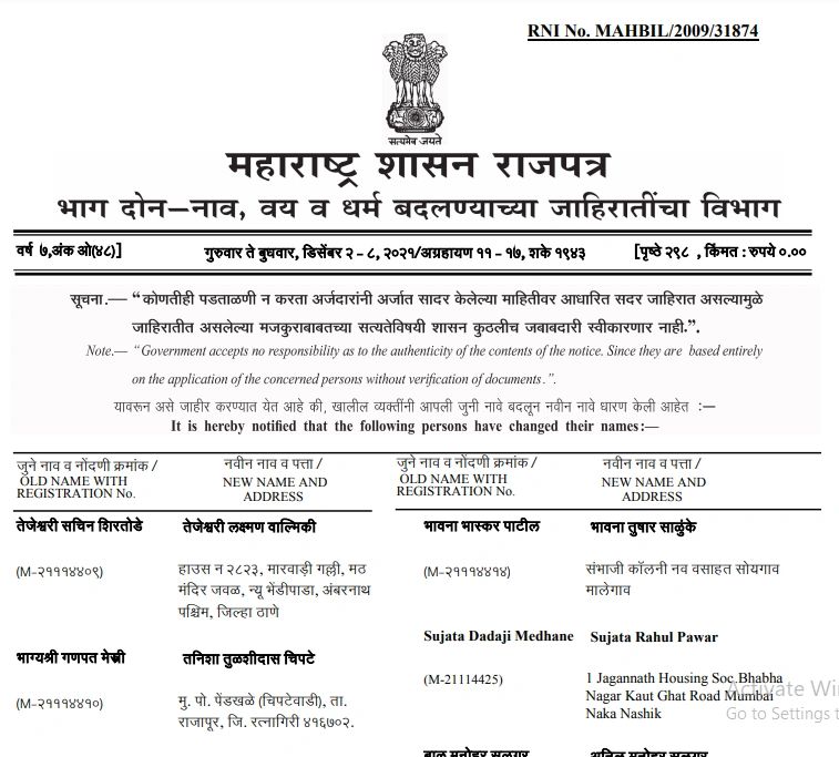 Maharashtra EGazette Name Change Services (8329583743)