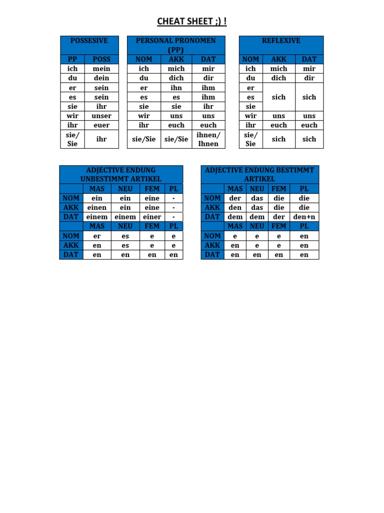 German grammar cheat sheet for beginners.pdf German grammar, Language