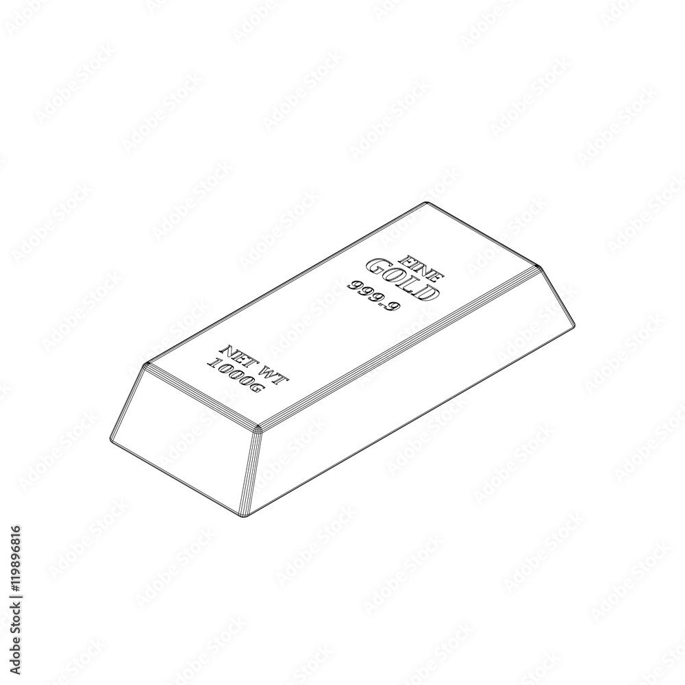 Gold bar.3d isometric style.Vector outline illustration. Stock Vector