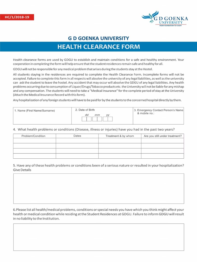 Health Clearance Form