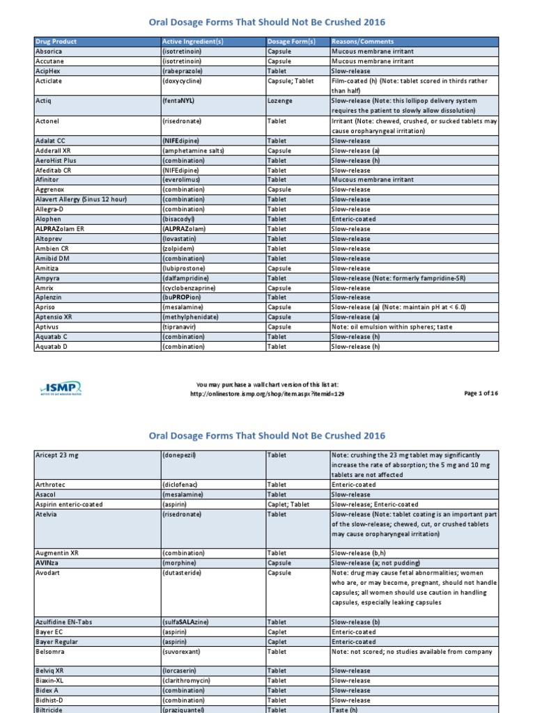 Two official usp terms are used to designate special‐release medication forms: However, some may not be listed. This table has some common meds that should not be crushed; Please contact the pharmacy if you have any.