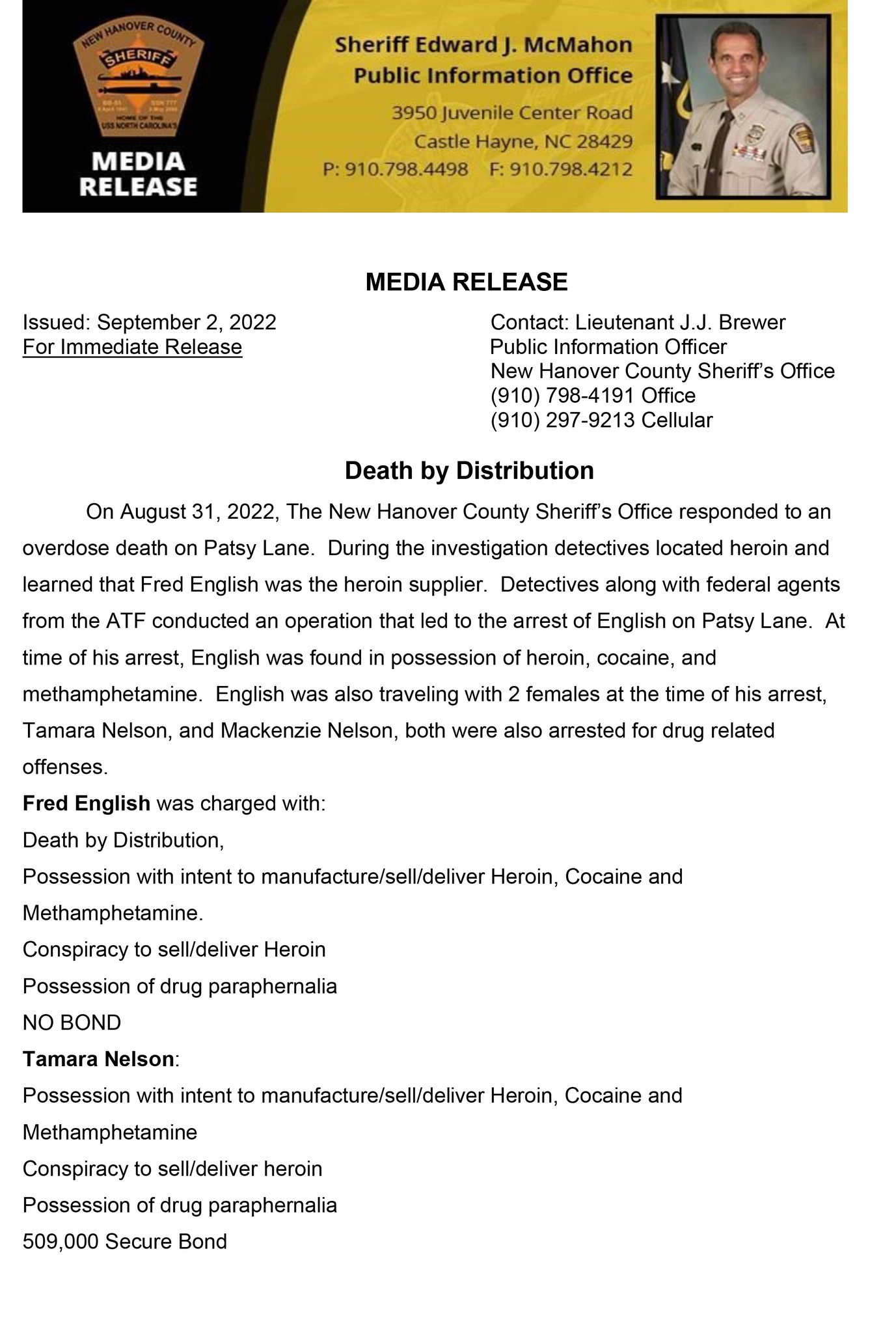 New Hanover Sheriff on Twitter "Death by Distribution https//t.co