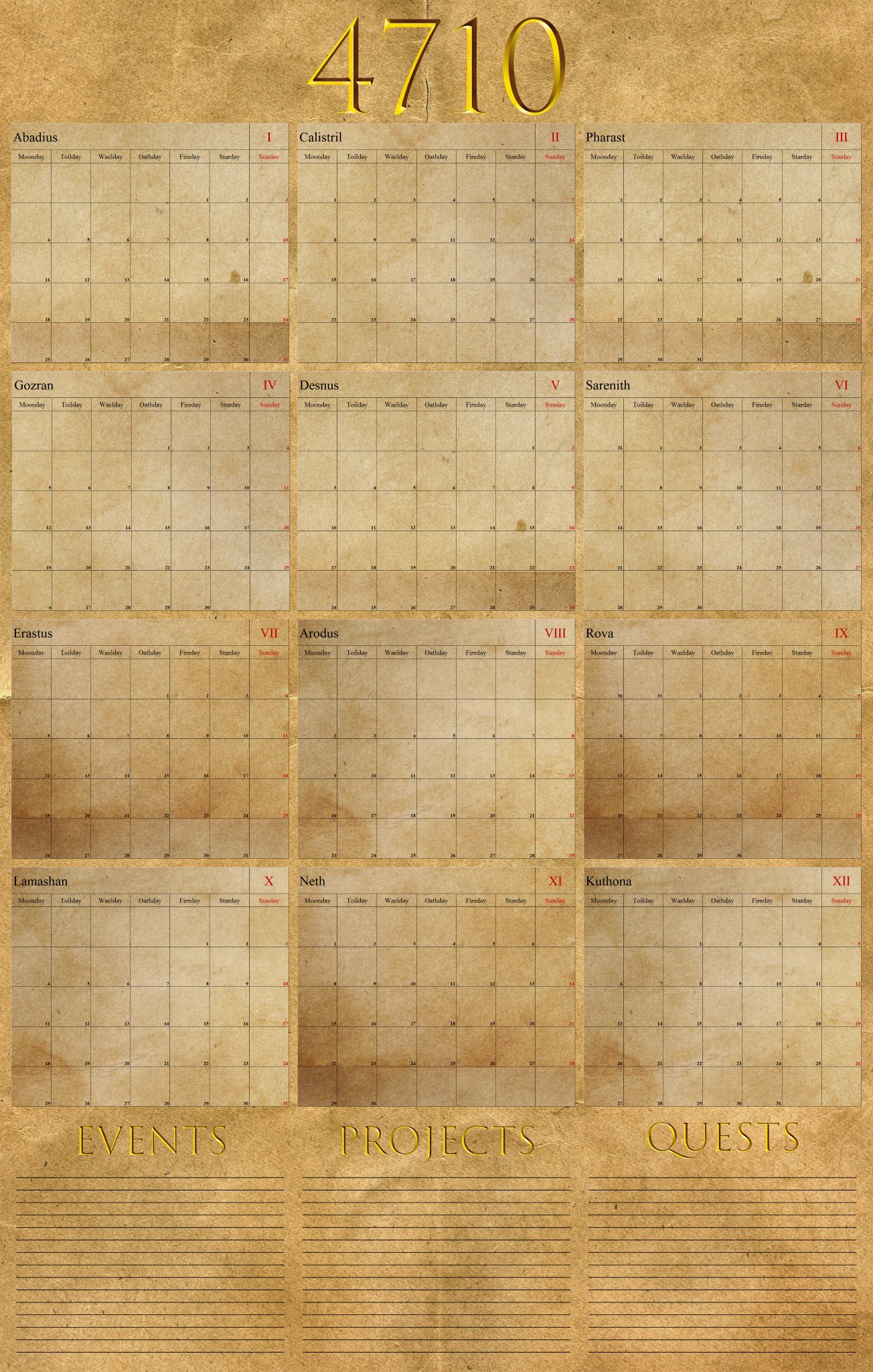 Pathfinder Kingmaker Calendar Printable Template Calendar
