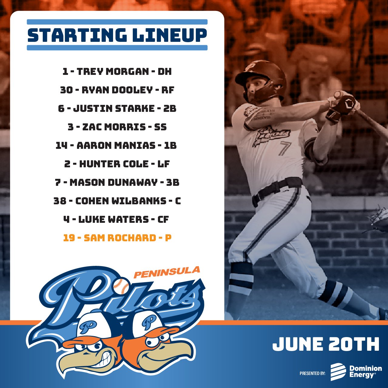 Peninsula Pilots on Twitter "Tonight’s lineup vs the Morehead City
