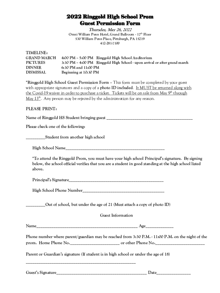 Fillable Online 2022 Ringgold High School Prom Guest Permission Form