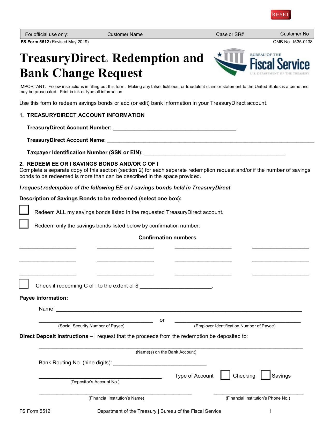 Fillable Online FS Form 5512 Bank Change Request OMB 15300071 Fax