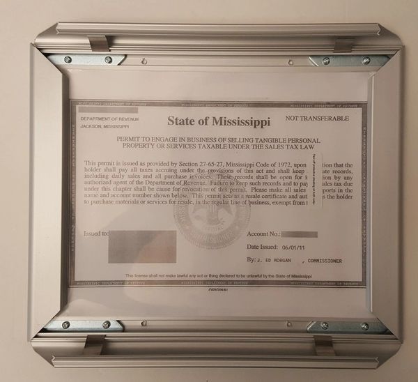 Business license Permit state of Mississippi frame HPD SIGNS THE