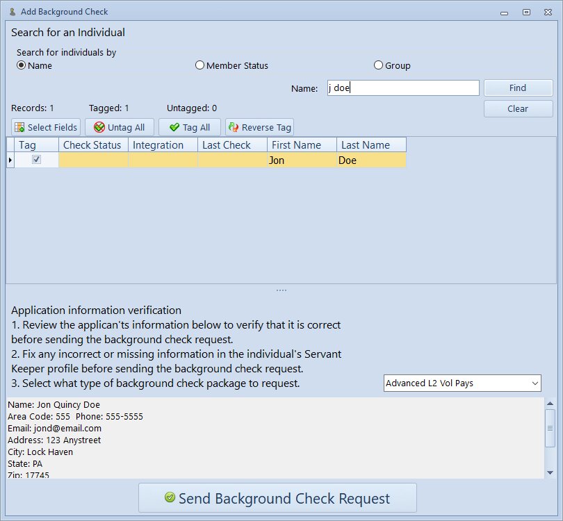 SK8 Sending a Background Check Request (using Sterling Volunteers)