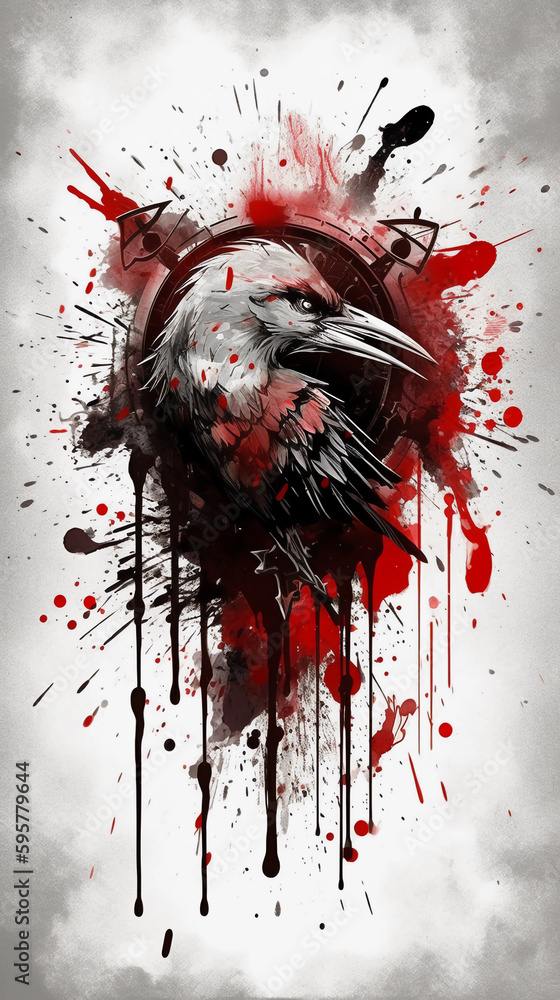 Tattoovorlage für ein Trash Polka Tattoo mit Raben StockIllustration