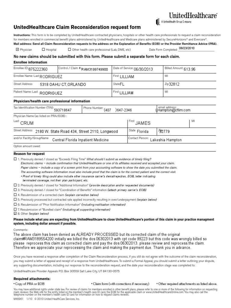 United Healthcare Provider Appeal Form