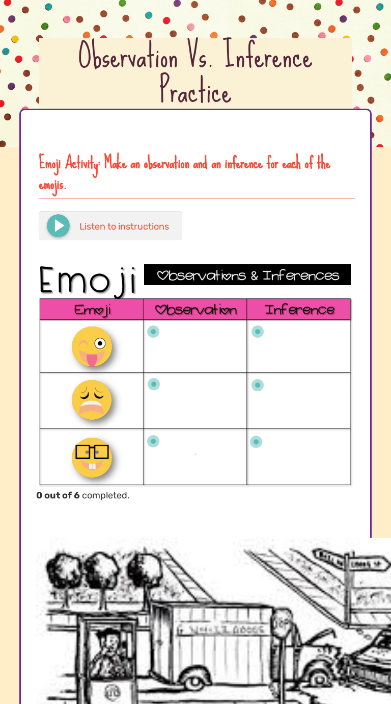 Worksheet On Observation And Inference - An observation is something that you experience directly through one of your five senses (sight, hearing, smell, taste, or touch). Read each statement and decide whether it is an observation or an inference. Young studio observations and inferences observations what do you see? The grass on the school’s front lawn is wet. Identify and list at least 5 items that you see in the weir studio. There is dew on the grass. Did the did the person making each statement.